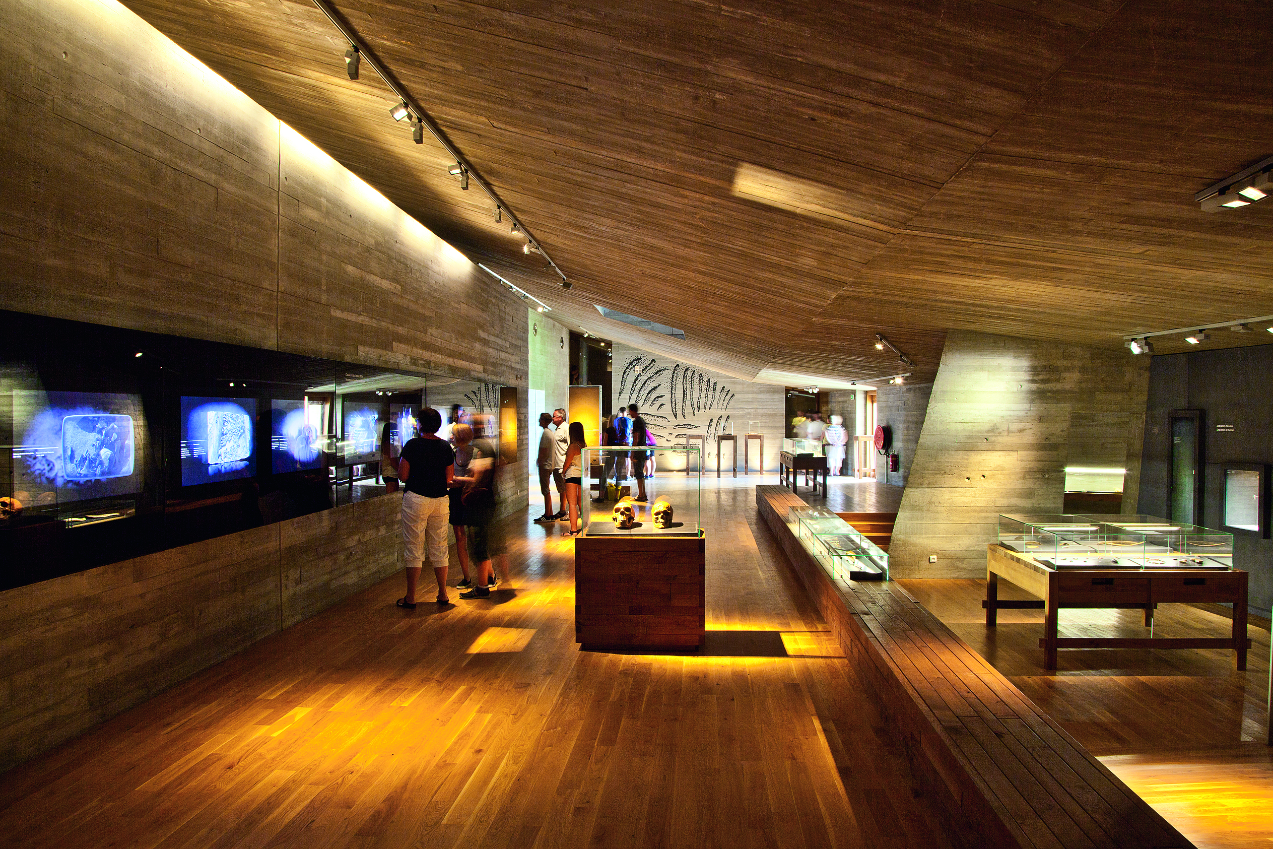 V unikátní podzemní architektuře, zasahující až na úroveň nálezových vrstev, jsou vystaveny kamenné a kostěné nástroje používané v každodenním životě i při lovu, replika dolnověstonického hrobu tří mladých jedinců přibližuje pohřební rituály a vystavené umělecké předměty, například sošky venuší a plastiky zvířat, ukazují estetické cítění pravěkých lidí.
